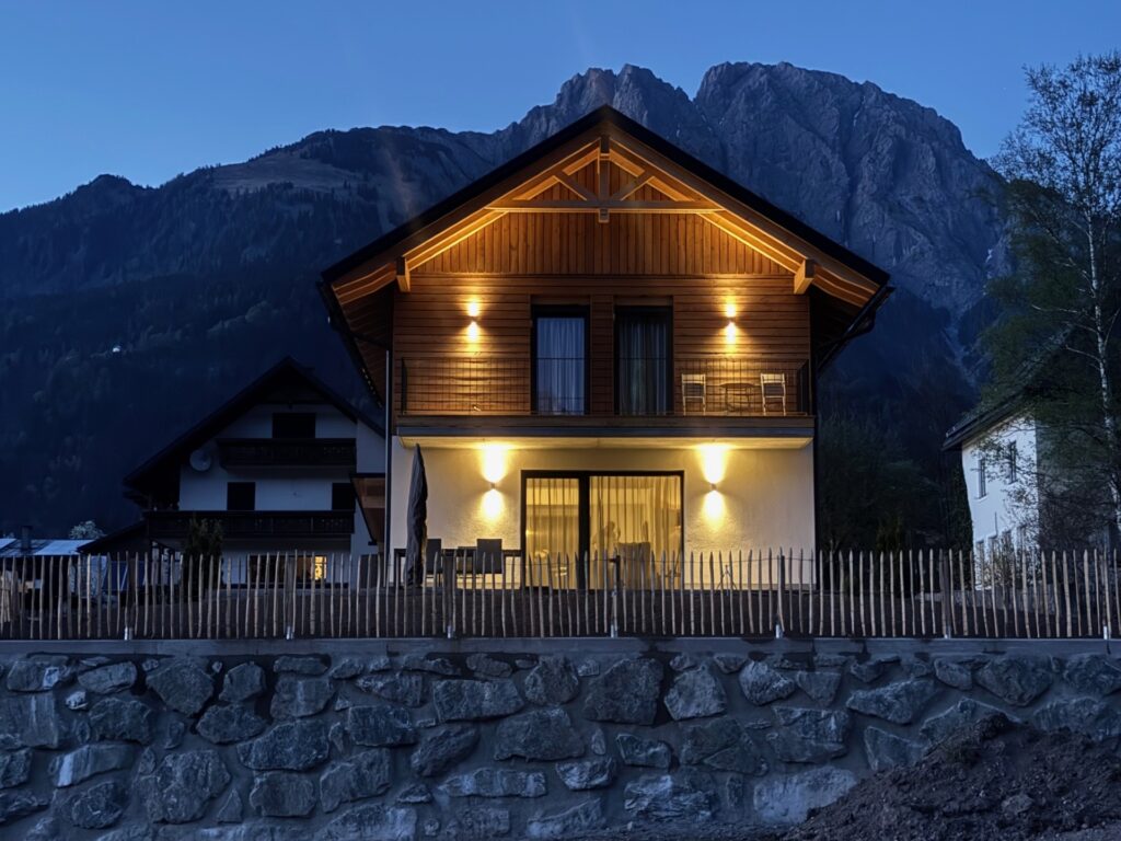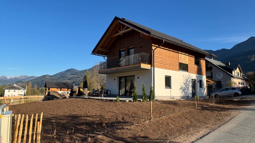 De laatste stappen van het bouwproces worden in maart en april uitgevoerd, de laatste laag op de buitenmuren wordt aangebracht, de bestrating wordt gerealiseerd en de tuin wordt ingericht en de buitenverlichting wordt gemonteerd en dan is Sportchalet Bergkristall af. We verhuren vanaf juni met een gerust gevoel aan onze gasten.